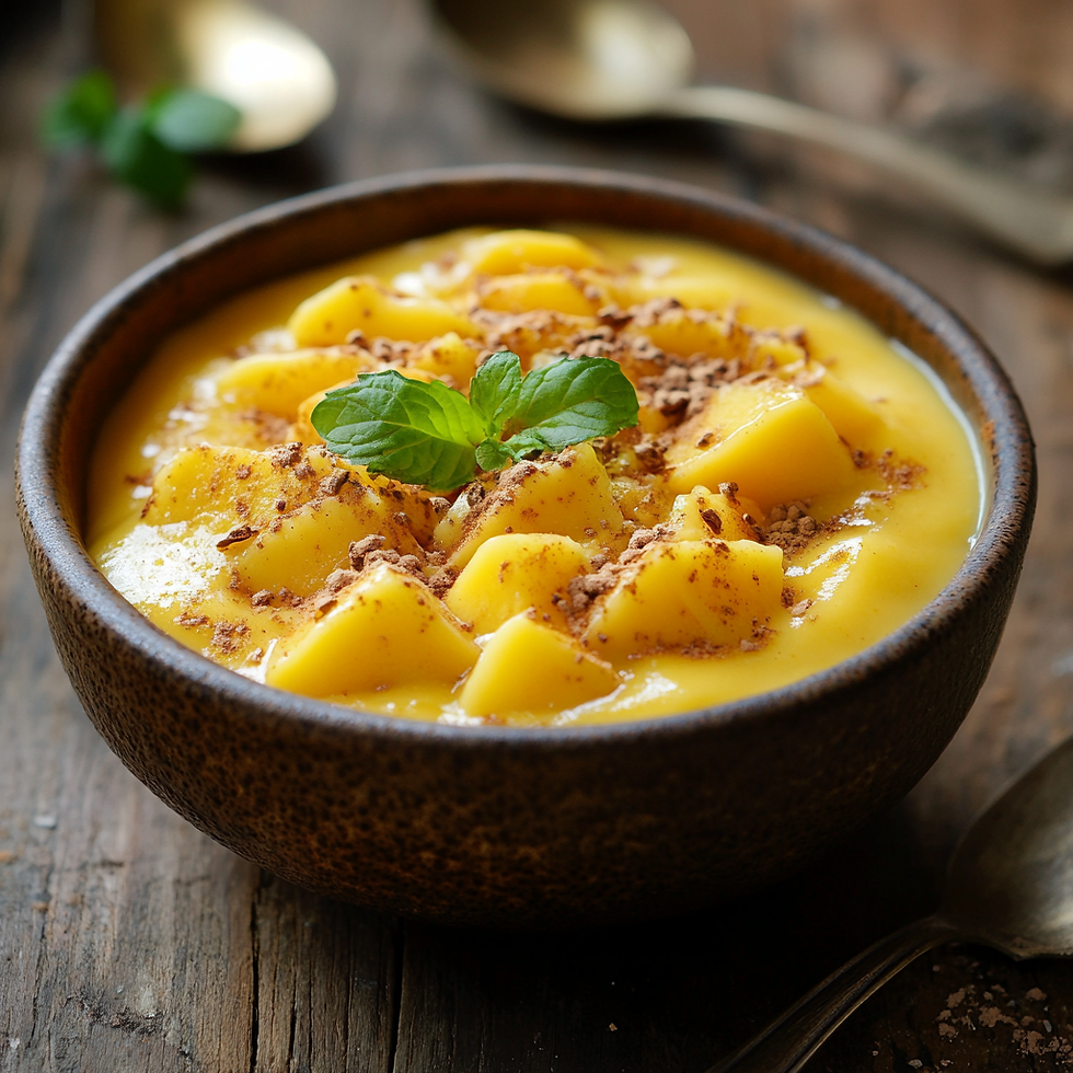 Krok 3: Vychladlý puding vyklopte a přelijte medovým mangem.
